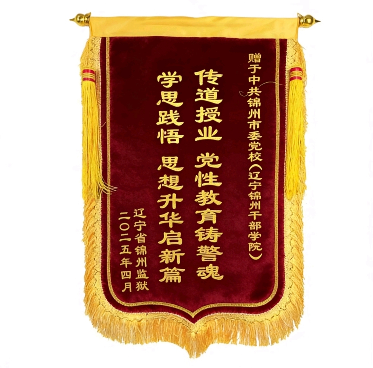 4月,辽宁省锦州监狱送来锦旗,“传道授业 党性教育铸警魂;学思践悟 思想升华启新篇”,凝练了学院在党性教育中的扎实成效。10月,锦州市自主择业军转干部党史培训示范班也送来锦旗,“治学严谨传薪火;党史铸魂守初心”,是对学院深耕红色教育、传承红色基因的最高褒奖。