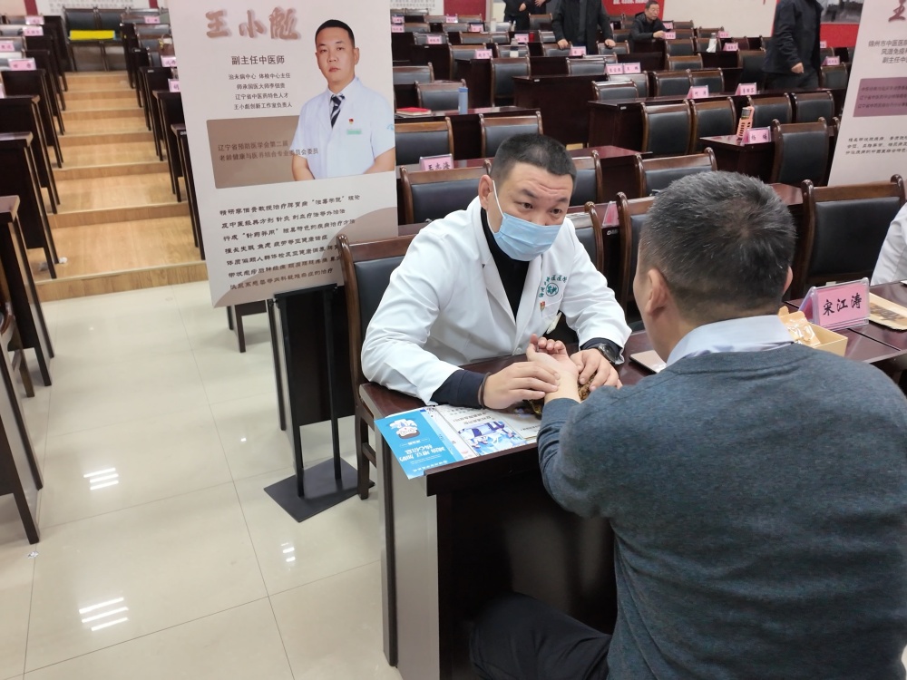 锦州市中医医院治未病中心主任王小彪为学员把脉问诊