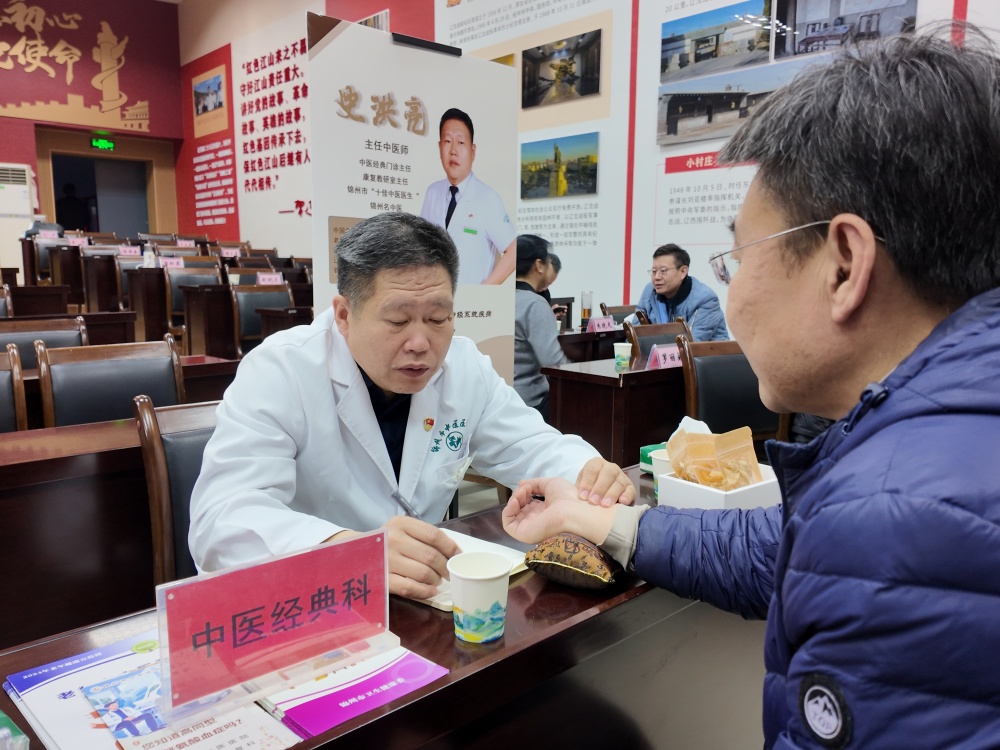 锦州名中医、锦州市中医医院康复教研室主任史洪亮为学员把脉问诊