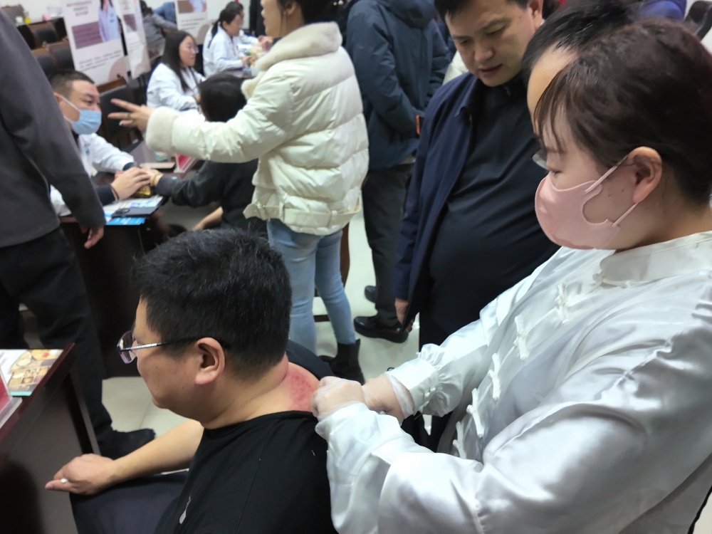 锦州市中医医院心病肺病重症科护士长党蓓蓓为学员刮痧