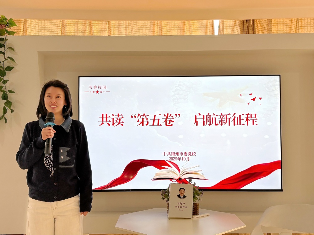 10月28日,中共锦州市委党校举办第53期“书香校园”读书分享活动。本期由青年教职工团队围绕《习近平谈治国理政》第五卷开展深入学习交流,进一步推动习近平新时代中国特色社会主义思想入脑入心、见行见效,切实把学习成果转化为推动工作的强大动力。