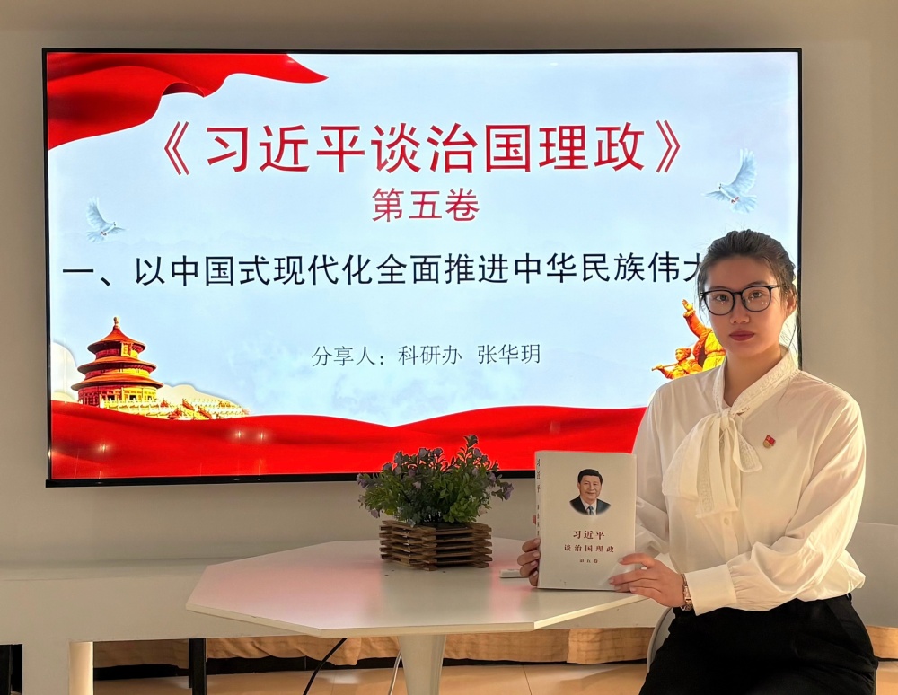 “学之愈深,知之愈明,行之愈笃。”本次读书分享会中,张华玥、赵婉莹、赵晨晓、尹娜娜、张懿五位同志分别就书中“以中国式现代化全面推进中华民族伟大复兴”、“发展新时代中国特色社会主义文化”、“落实以人民为中心的发展思想,不断提高人民生活品质”、“全面推进美丽中国建设”、“坚持和加强党中央集中统一领导,把党的自我革命进行到底”等五个章节,结合岗位职责和学习体会,开展原文领读与感悟分享。大家从理论到实践、从历史到现实、从国家发展到岗位职责,谈体会、讲认识、话担当,在学思践悟中进一步增强了政治认同、思想认同、理论认同和情感认同,带领大家更加深刻领悟党的创新理论的真理力量和实践伟力。